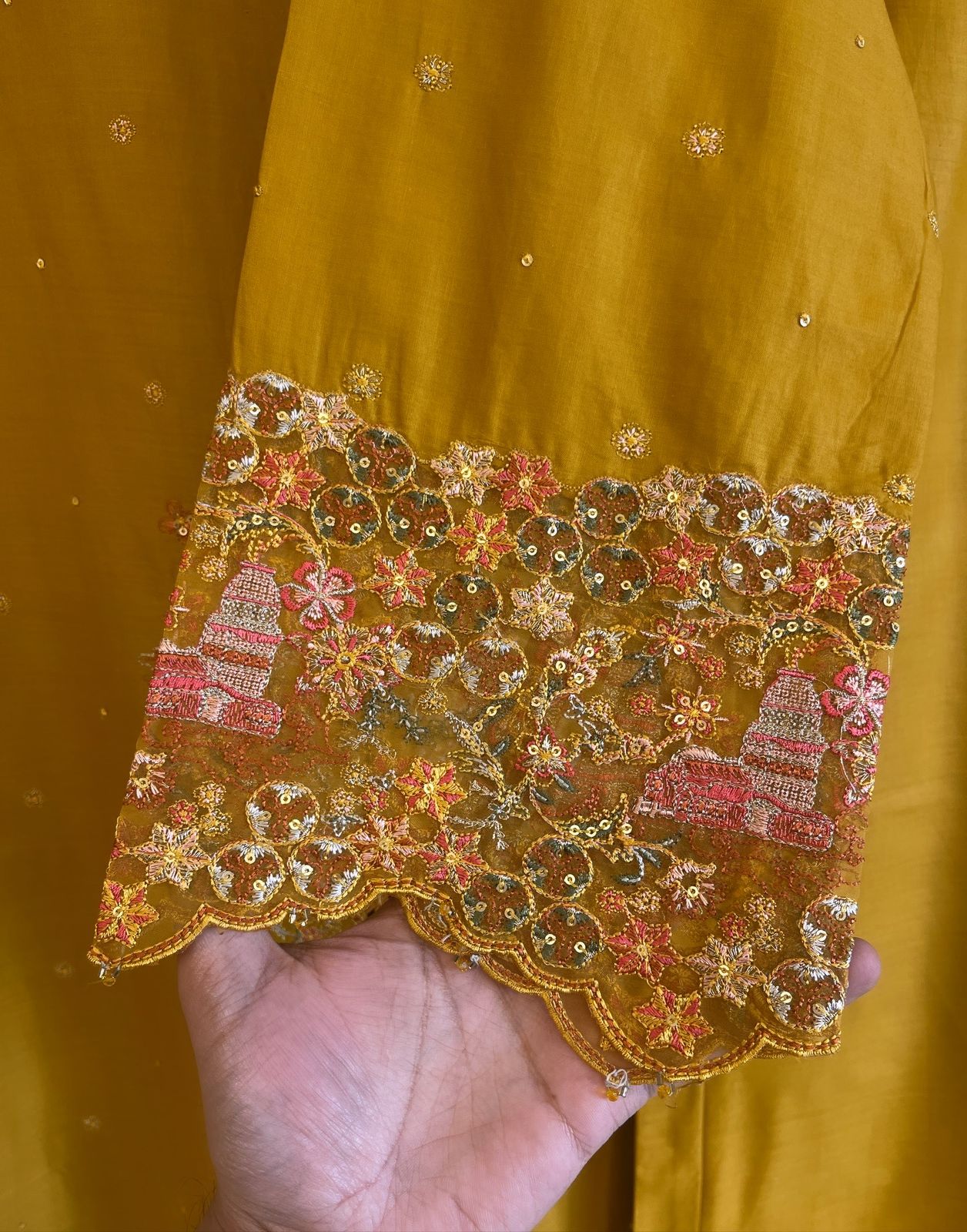Embroidered, lace work, patch work, embellishment