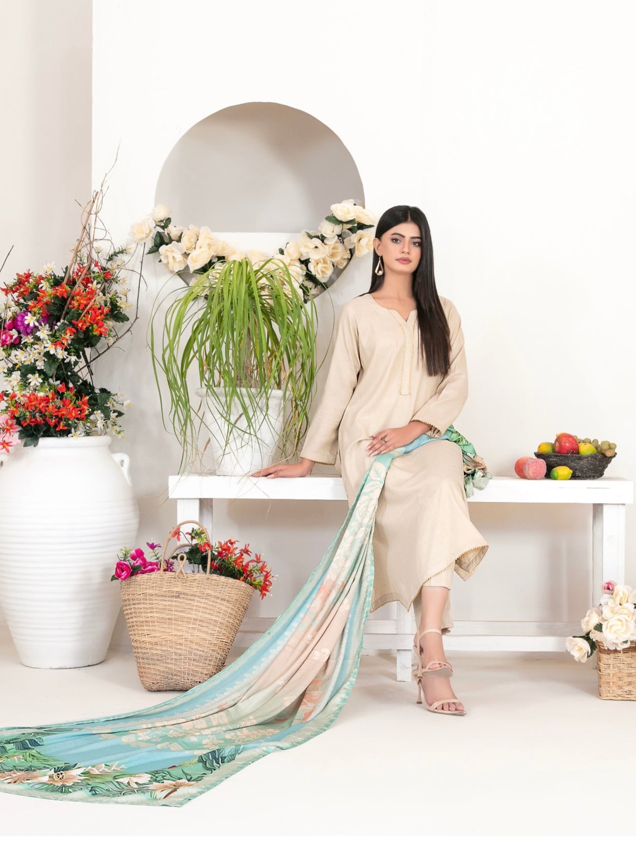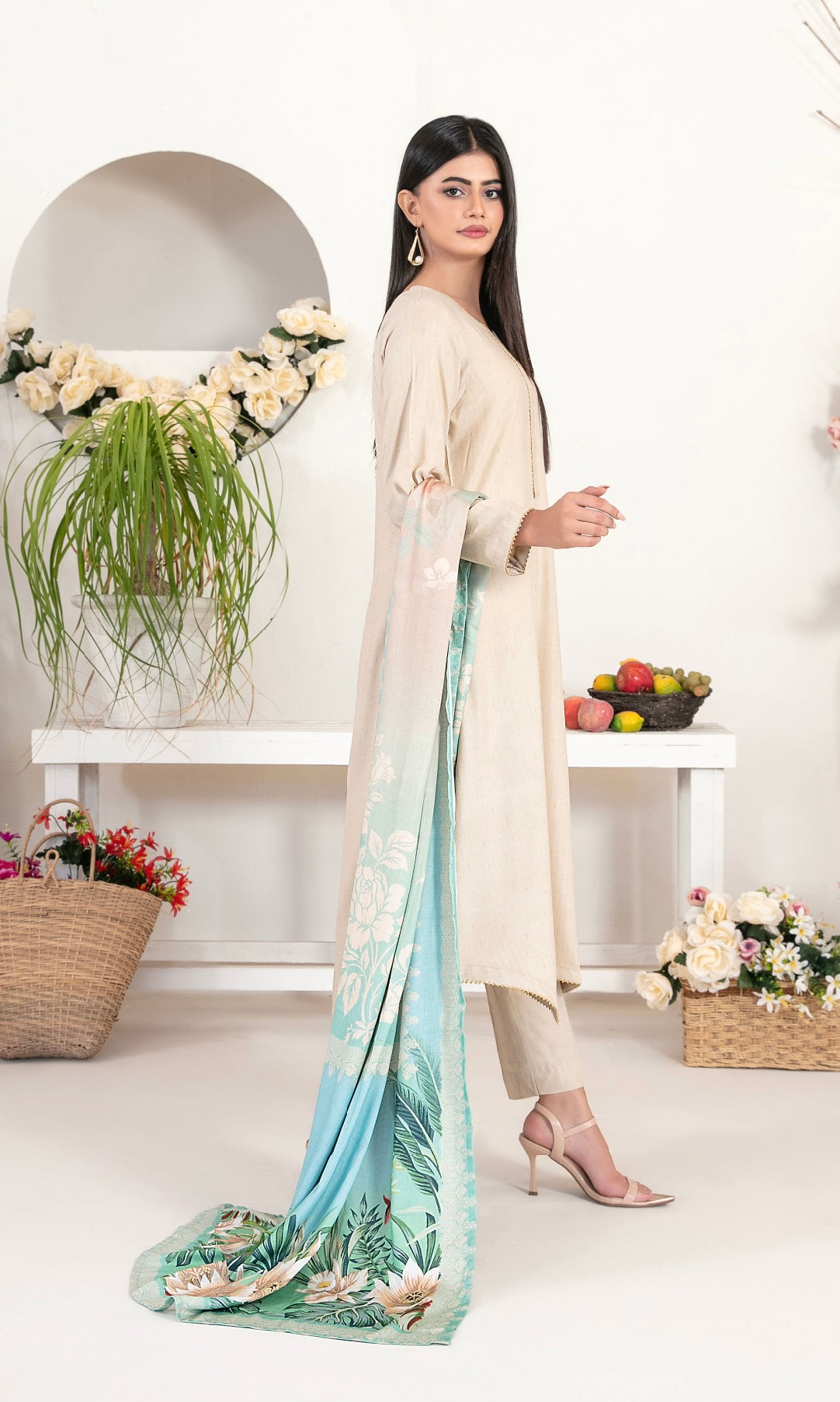 Premium Leather Peach Printed Duappata